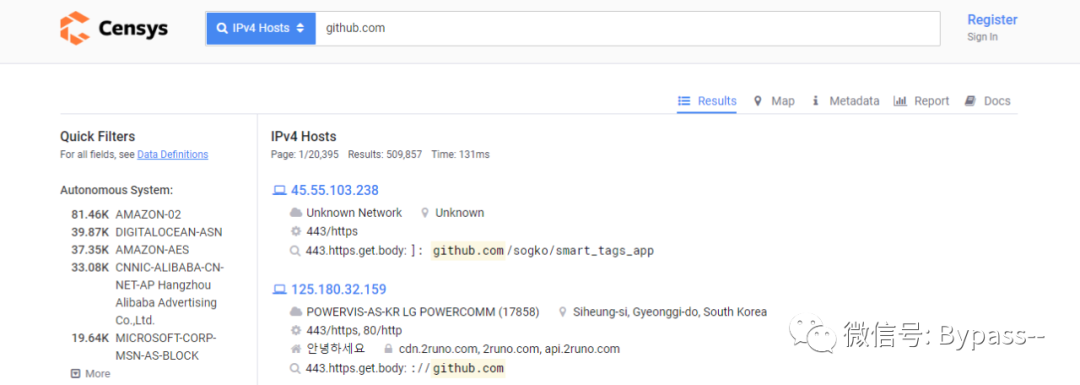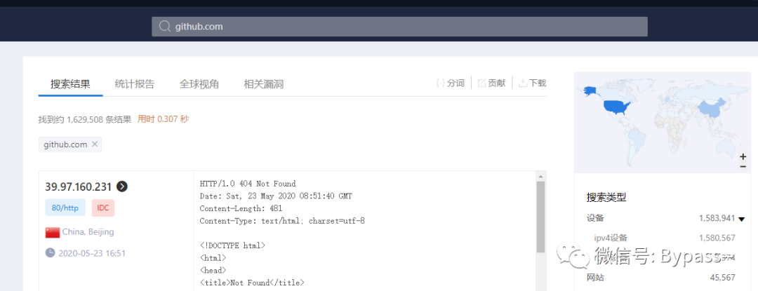 通过Zmap、masscan等工具对整个互联网发起扫描,针对扫描结果进行关键字查找,获取网站真实IP。